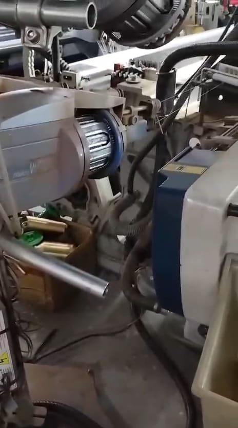 Picanol Optimax Rapier Loom is available for sale in working condition, designed for wide-width and jacquard fabric production. With a 360 cm working width, this loom is ideal for furnishing, home textiles, and decorative fabrics requiring large fabric widths and complex designs.