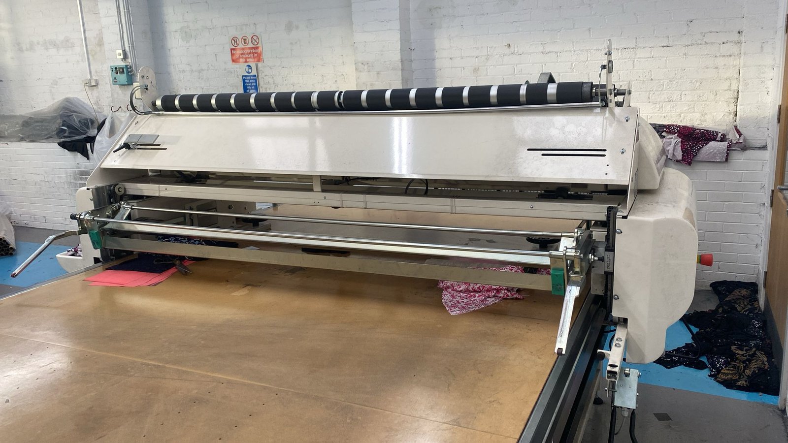 Application Spreading textile knitted fabric rolls to tables prior to matking and cutting to shape