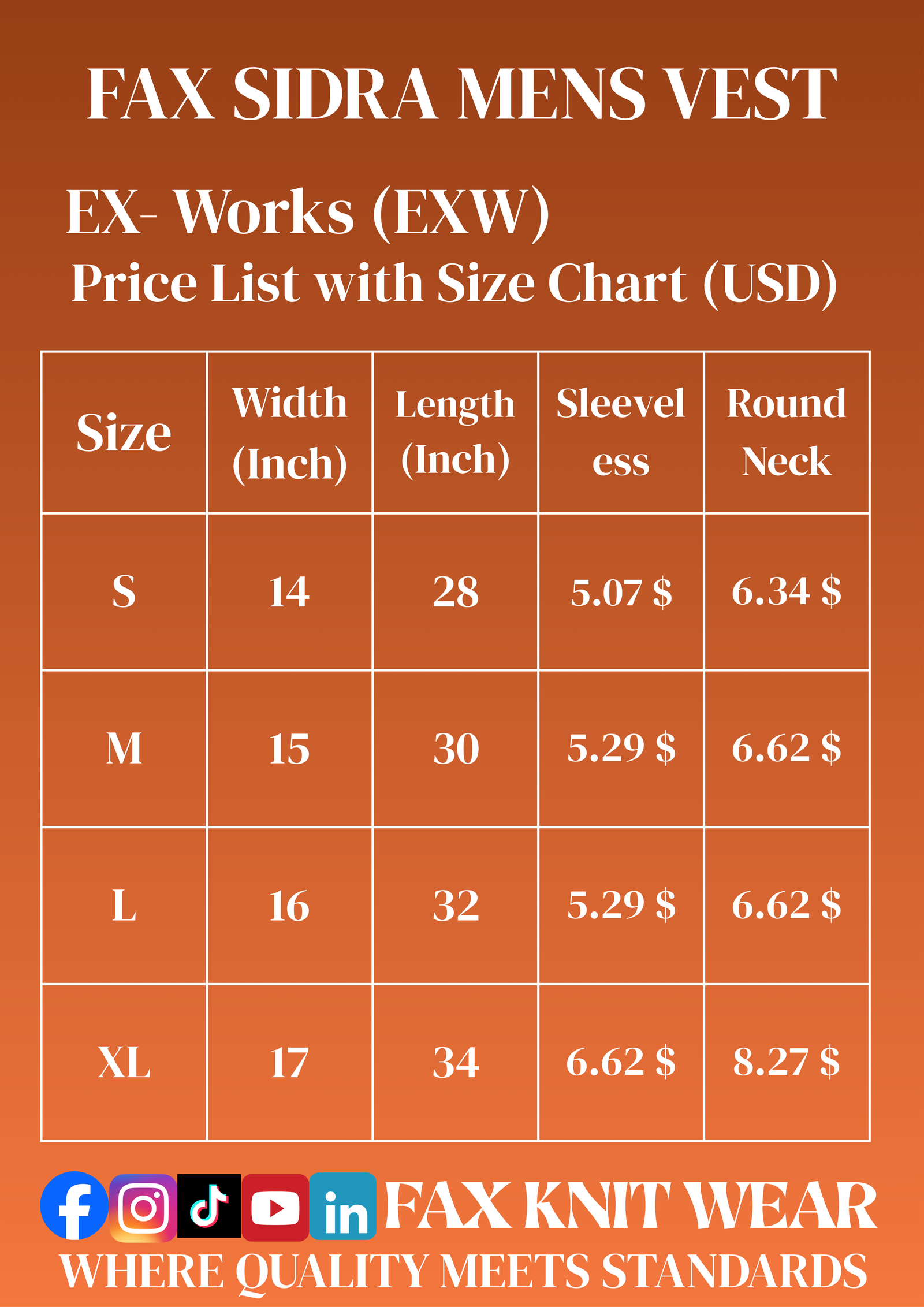 All sizes, measurements, and corresponding prices in USD are provided in the last image.