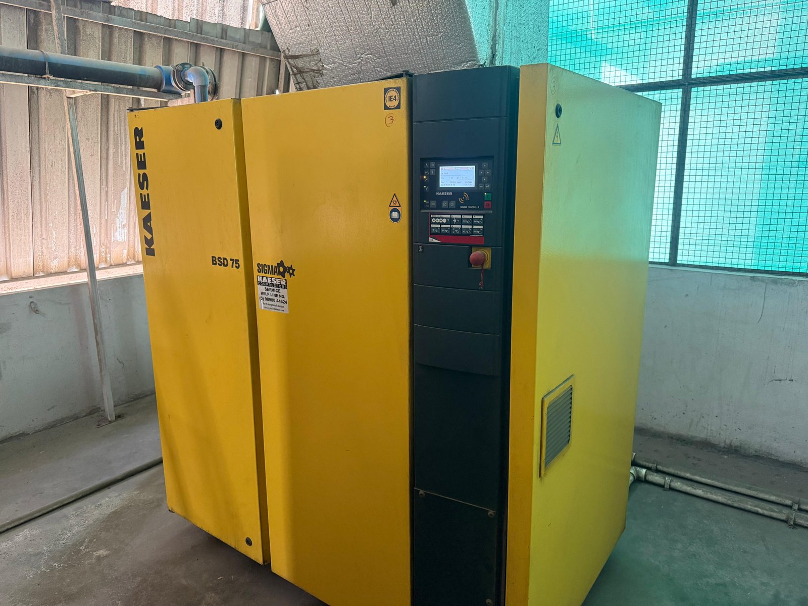 Kaeser BSD 75 Screw Air Compressor is available for sale in well-maintained and fully operational condition, ready for immediate delivery. Designed for continuous industrial use, this compressor is widely trusted in textile mills, garment factories, spinning units, weaving sheds, and manufacturing plants.