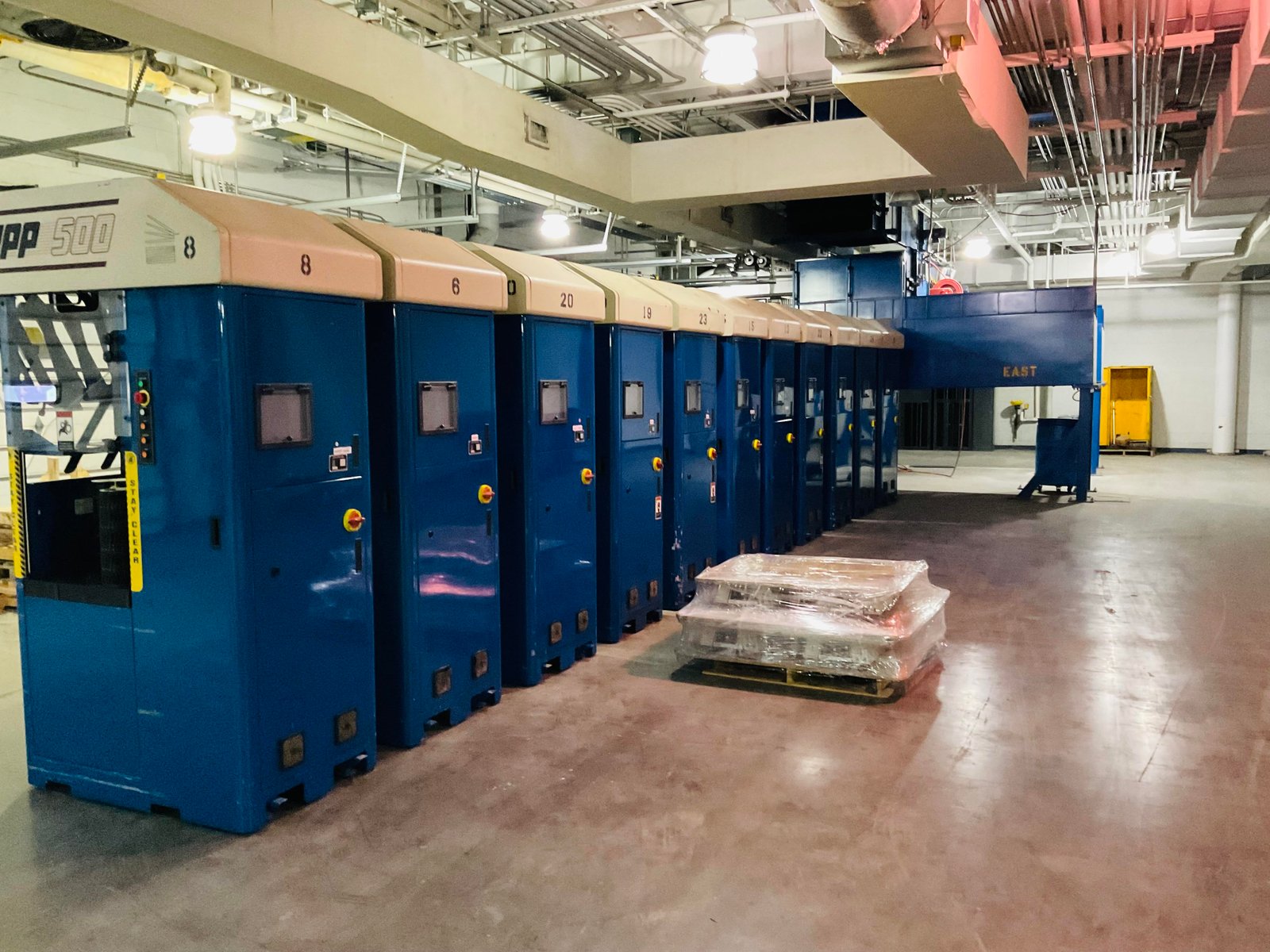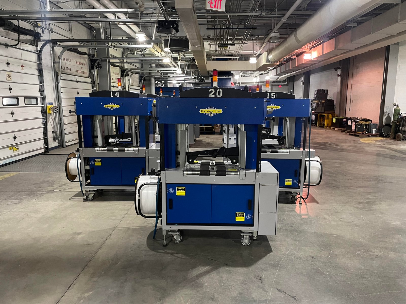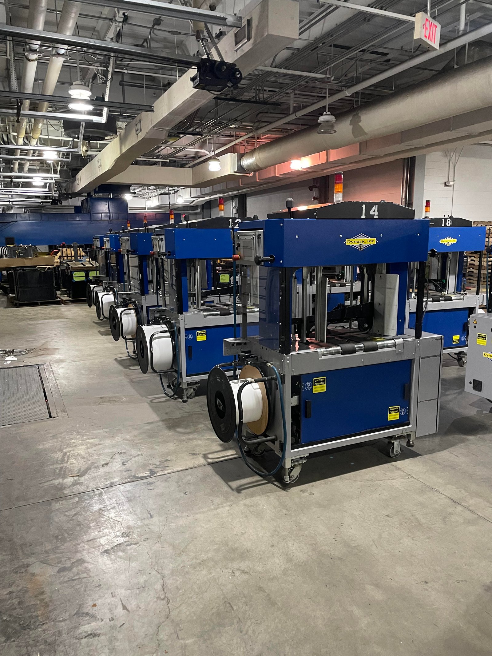 14 reconditioned Quipp 500 high speed stackers and 14 Dynaric NP5000 strappers available for immediate shipment.
